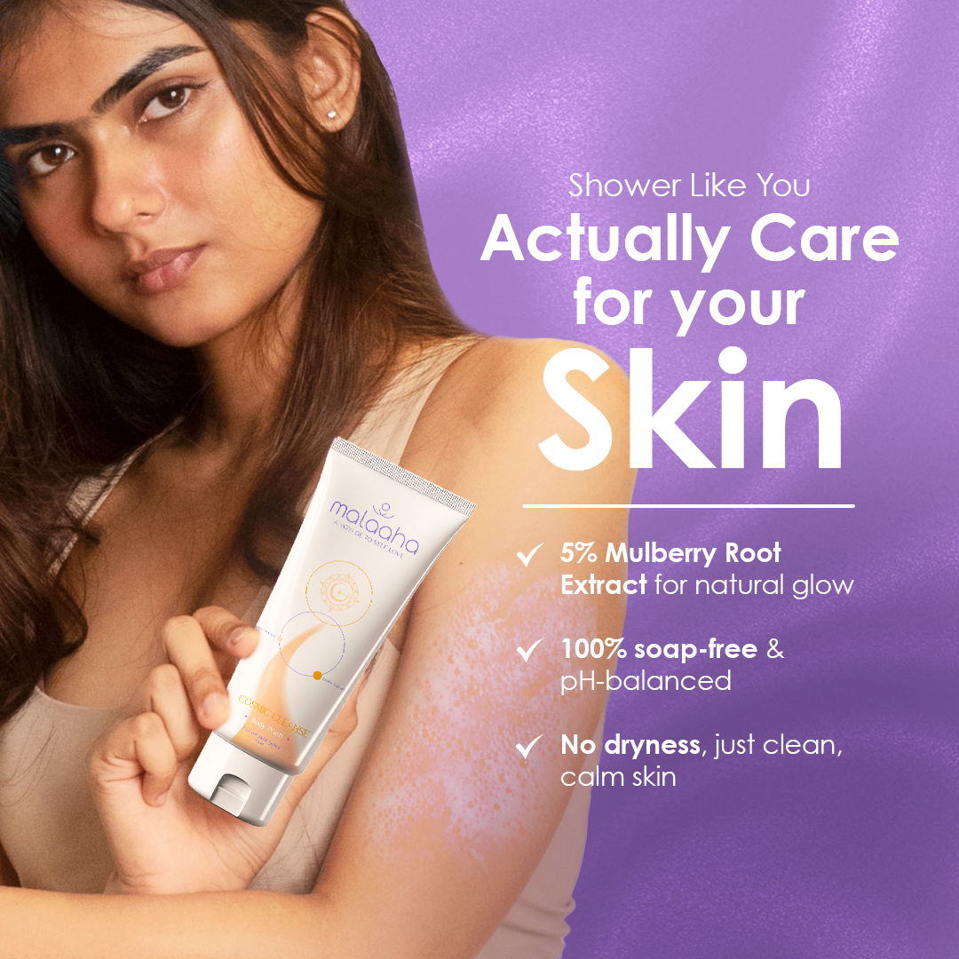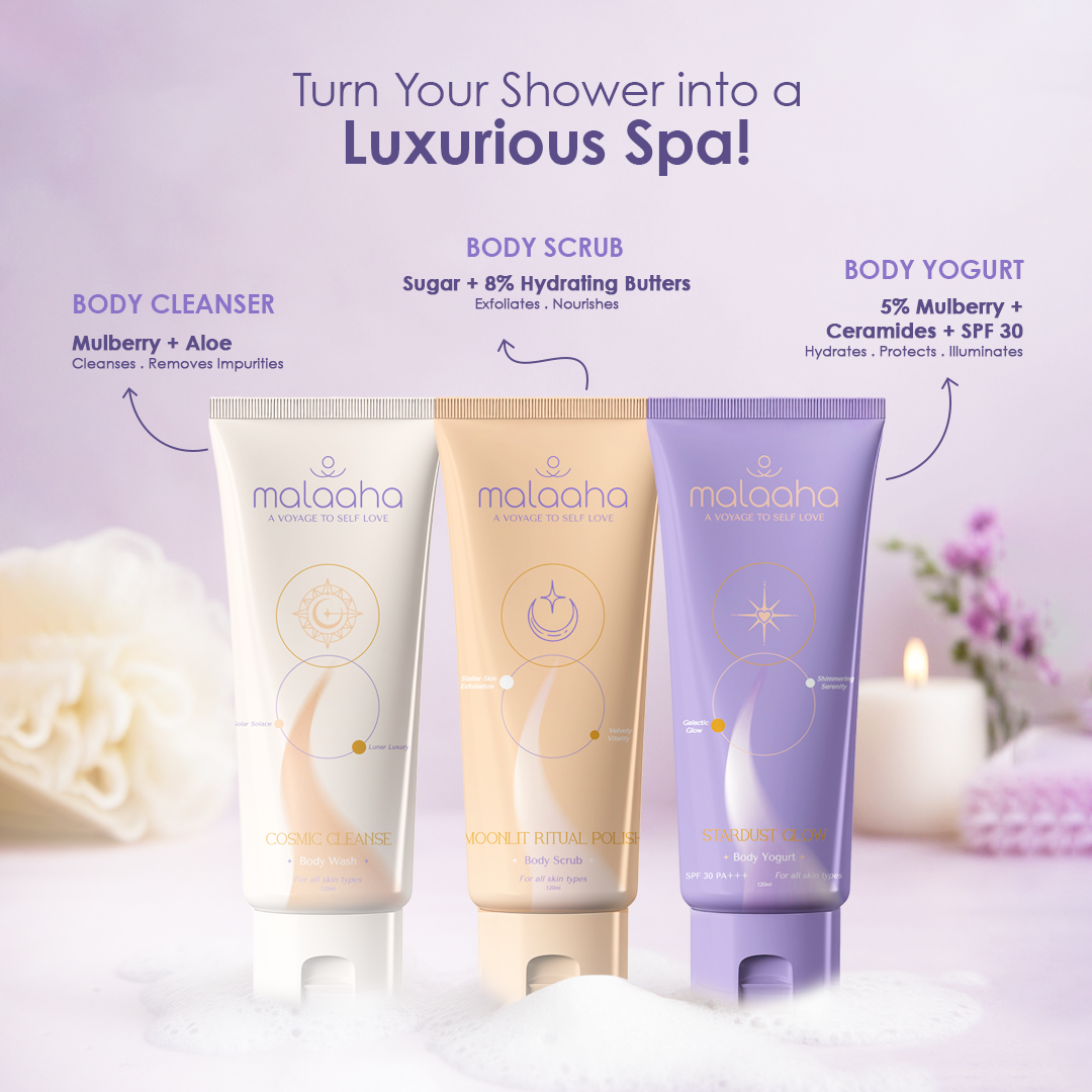 1️⃣ Cleanse with Cosmic Cleanse Brightening Body Wash 2️⃣ Exfoliate 2–3 times a week using Moonlit Ritual Body Scrub 3️⃣ Hydrate & Protect daily with Stardust Body Glow Body Yogurt (SPF 30 PA+++) Use in this order for best results and the ultimate glowing skin ritual. STORAGE INSTRUCTIONS: Store in a cool, dry place, away from direct sunlight. Keep out of reach of children.